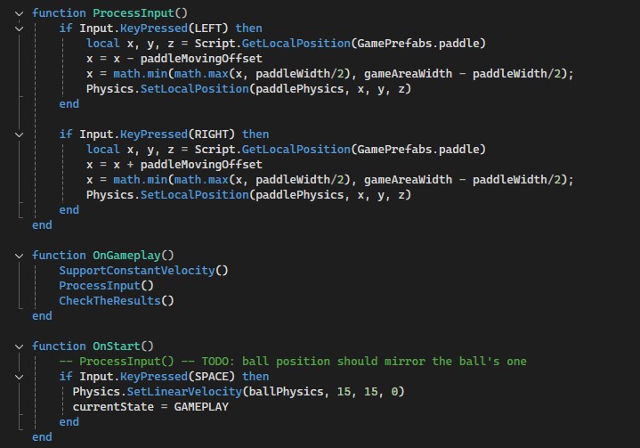 Here are some examples of Lua api - Script, Physics, Input are modules on the engine level. You can see how easy code looks and I can change the game in runtime and also I can write completely another game until that’s from 80s :)