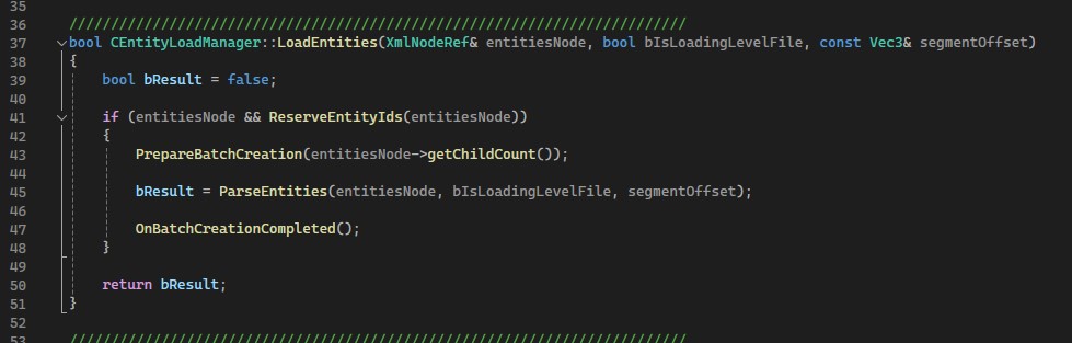Let’s step out and check who controls Entities—CEntityLoadManager. This class uses EntityPool, which is the vector of units. LoadEntites is the first interesting call.